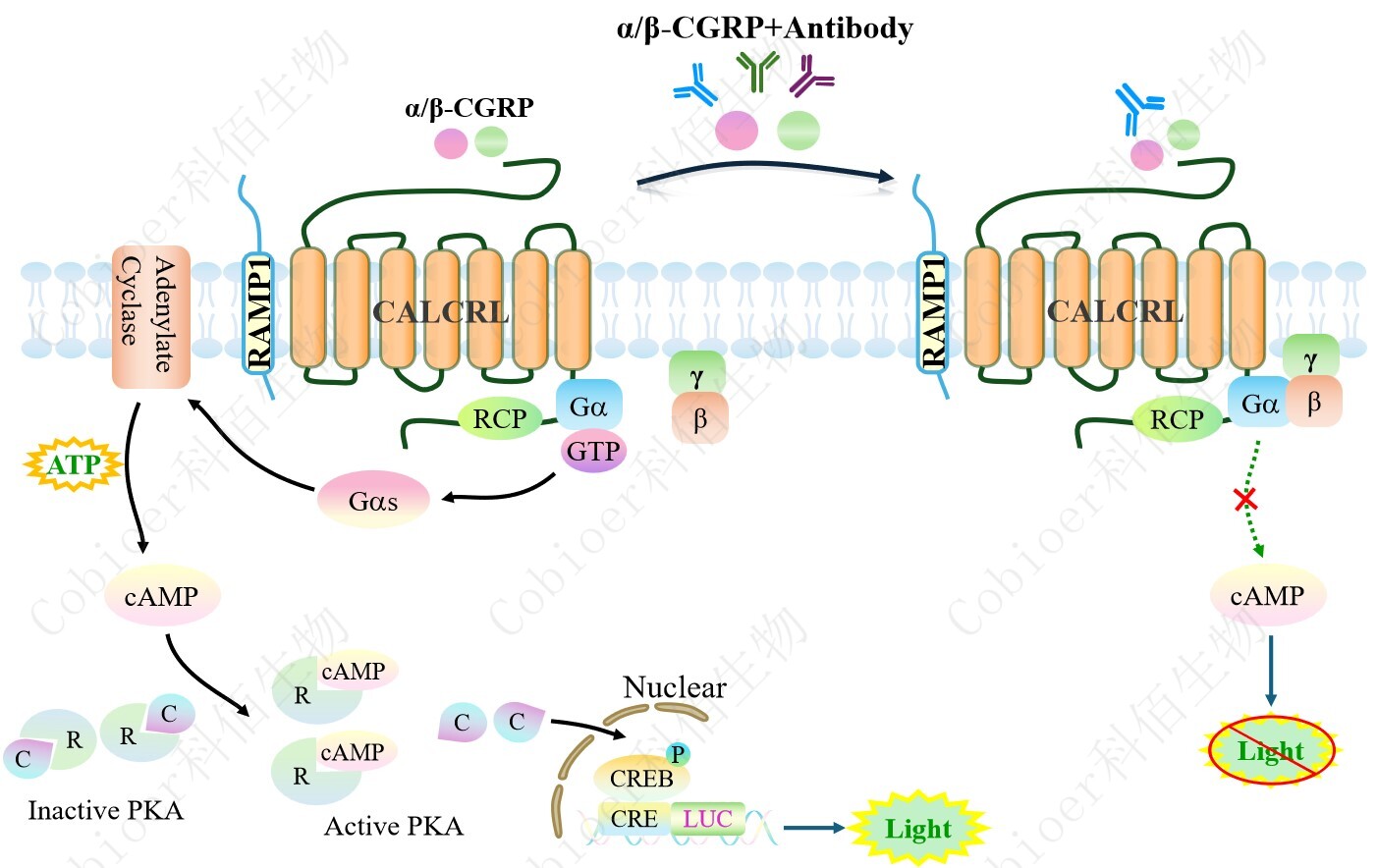 Figure 1. CALCRL&RAMP1 CRE-Luc HEK293 細胞模型原理圖