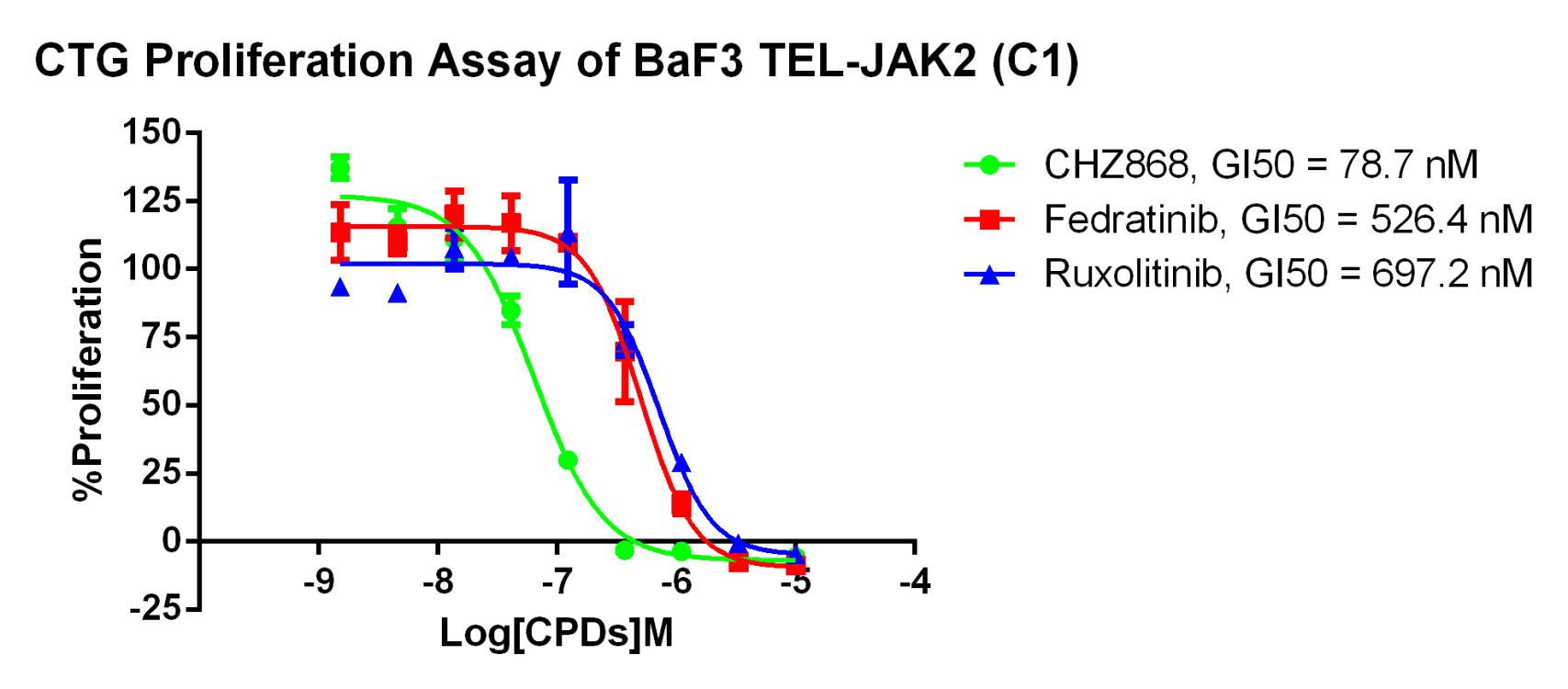 Figure 2. CTG Proliferation Assay of BaF3 TEL-JAK2 (C1).