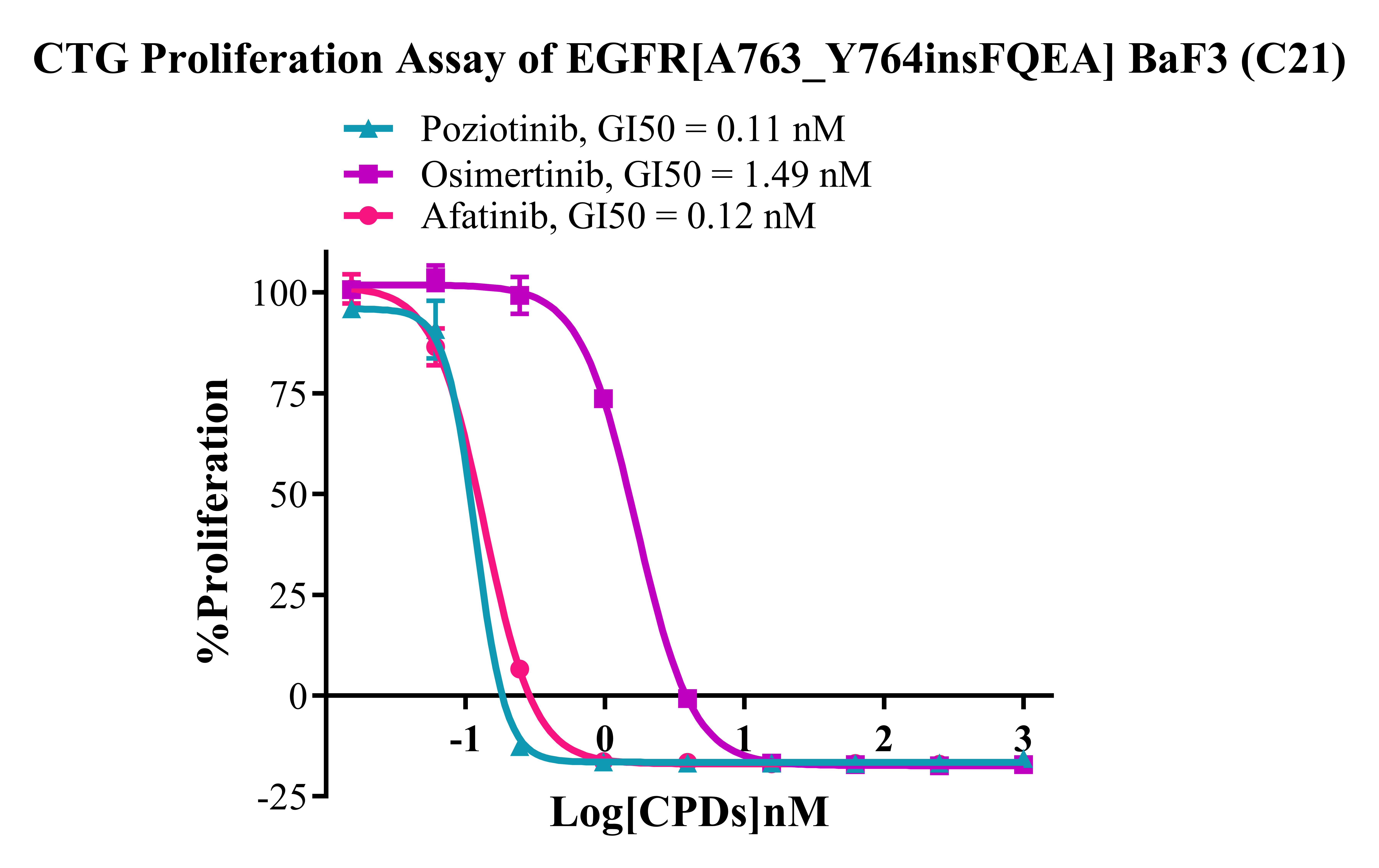 Figure 3. CTG Proliferation Assay of  EGFR [A763_ Y764insFQEA] BaF3 (C21).