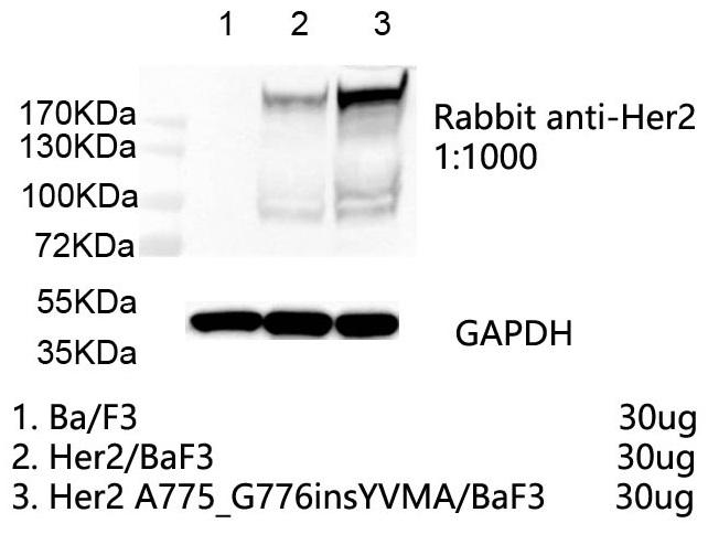 1. WB of Her2 A775_G776insYVMA/BaF3