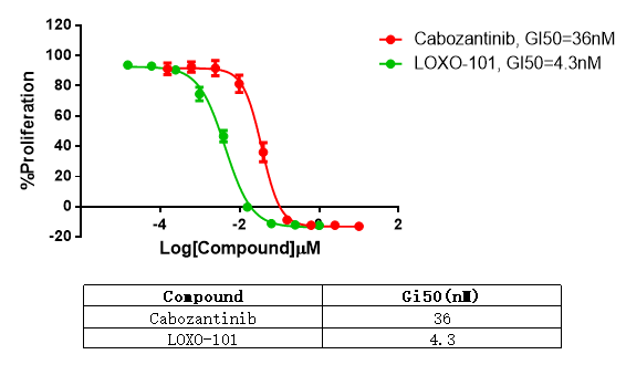 Figure 2. Anti-proliferation assay of two reference compounds on the TFG-NTRK1/BaF3 Stable Cell Line