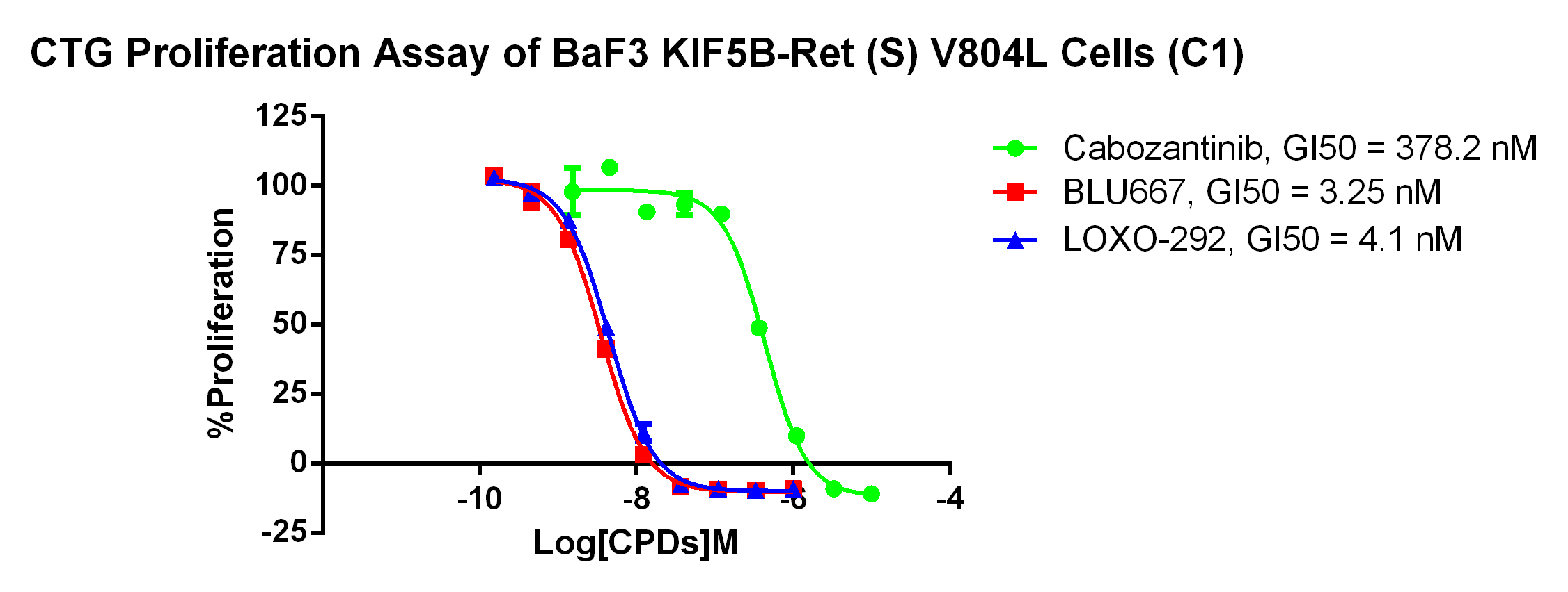 Figure 4.CTG Proliferation Assay of BaF3 KIF5B-Ret (S) V804L Cells (C1).