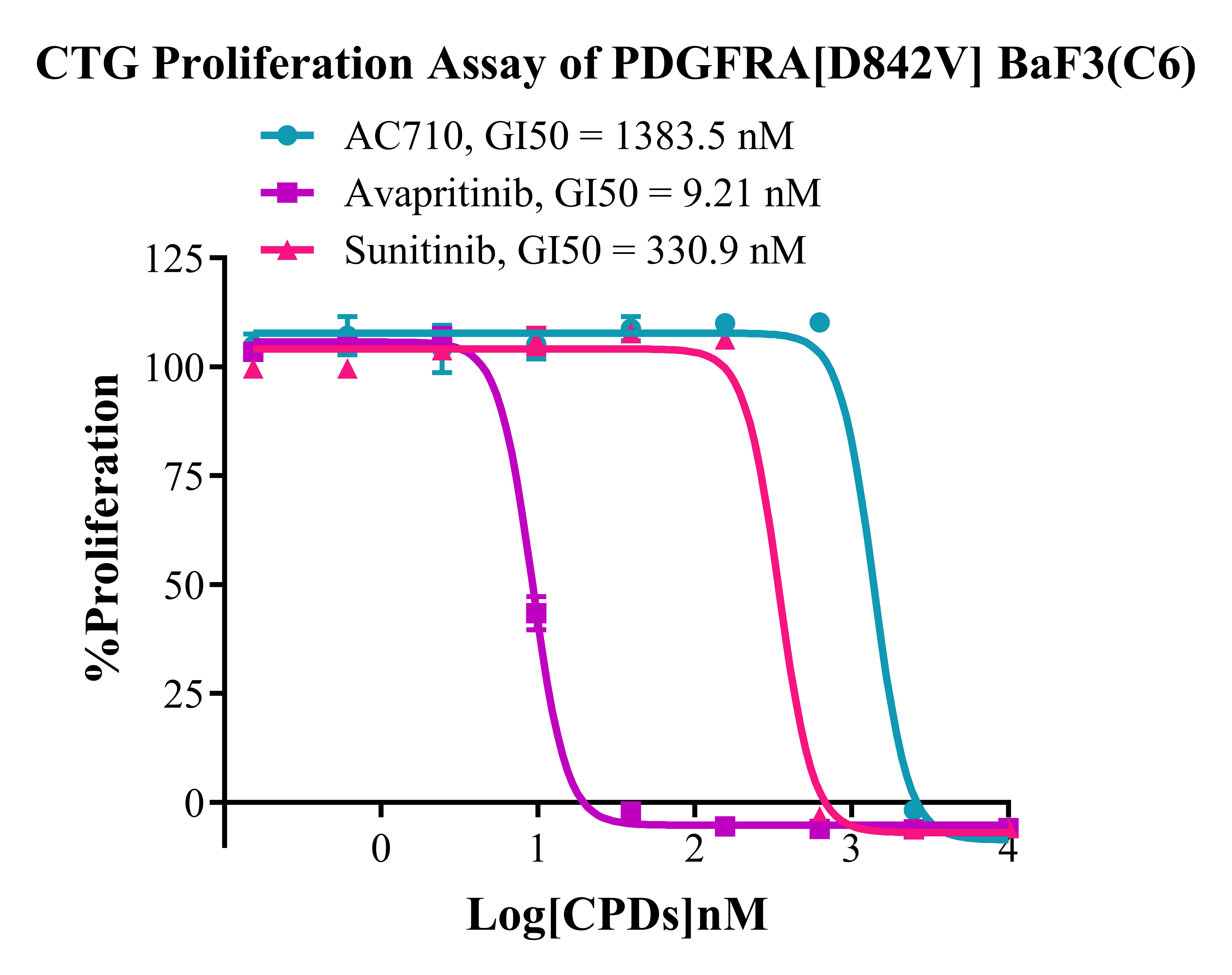 Figure 4. CTG Proliferation Assay of BaF3 PDGFRA [D842V] BaF3(C6).