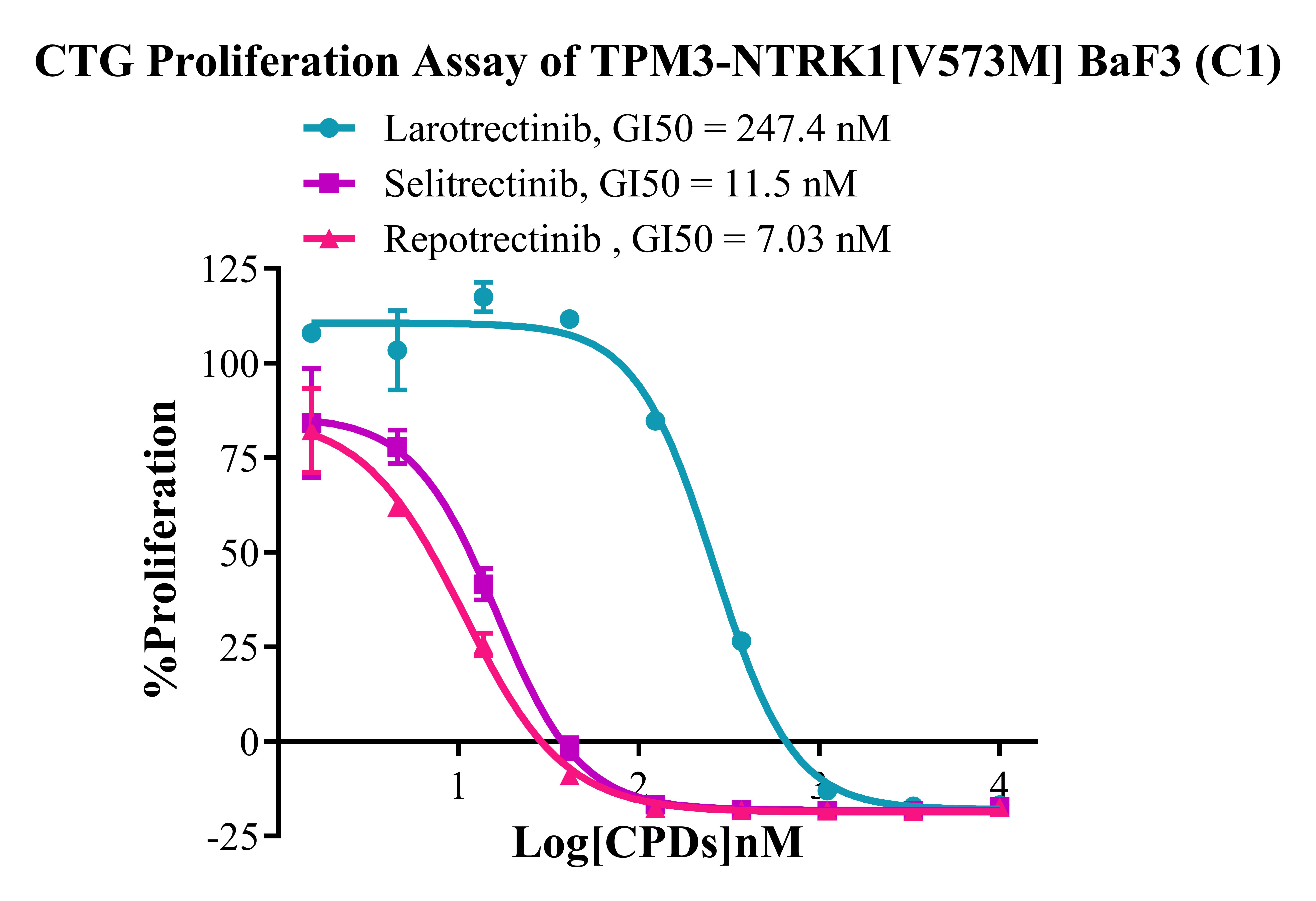 Figure 2. CTG Proliferation Assay of  TPM3-NTRK1 [V573M] BaF3(C1).