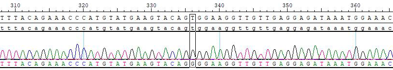 Figure 3. Sanger of c-Kit W557G/BaF3.