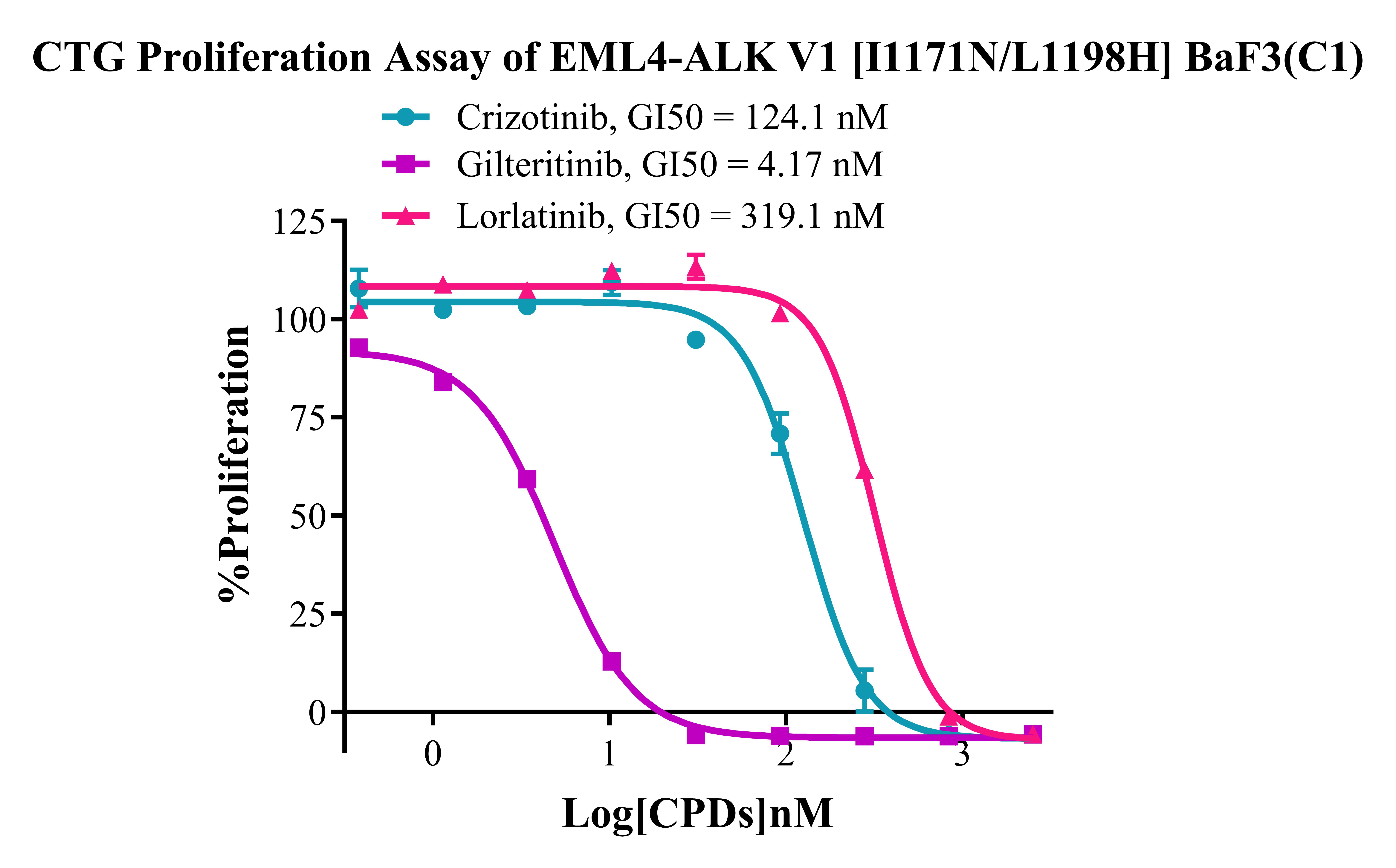 Figure 7. CTG Proliferation Assay of EML4-ALK V1 I1171N/L1198H BaF3(C1).