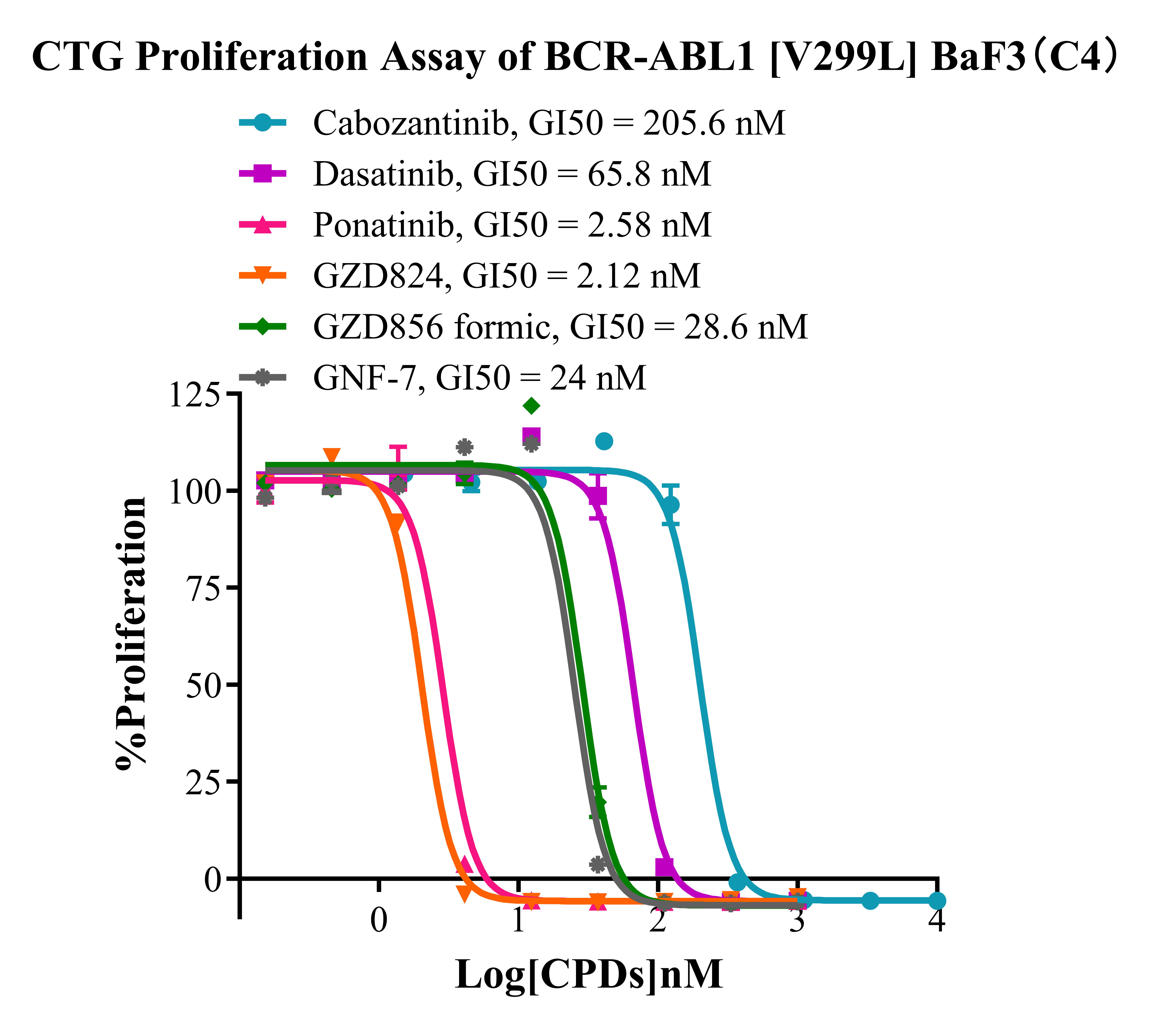 Figure 5. CTG Proliferation Assay of BCR-ABL1 [V299L] BaF3 (C4).