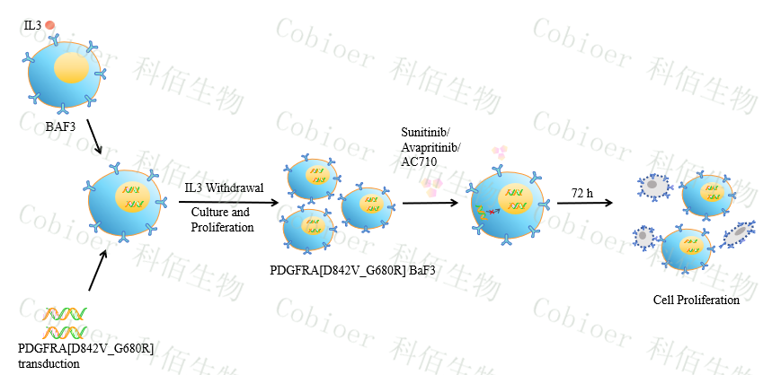 PDGFRA[D842V_G680R] BaF3 藥靶細(xì)胞,通過轉(zhuǎn)導(dǎo)突變狀態(tài)的 PDGFRA[D842V_G680R] 基因到 BaF3 細(xì)胞系中,穩(wěn)定表達(dá)人 突變形態(tài)下的 PDGFRA[D842V_G680R] 基因。