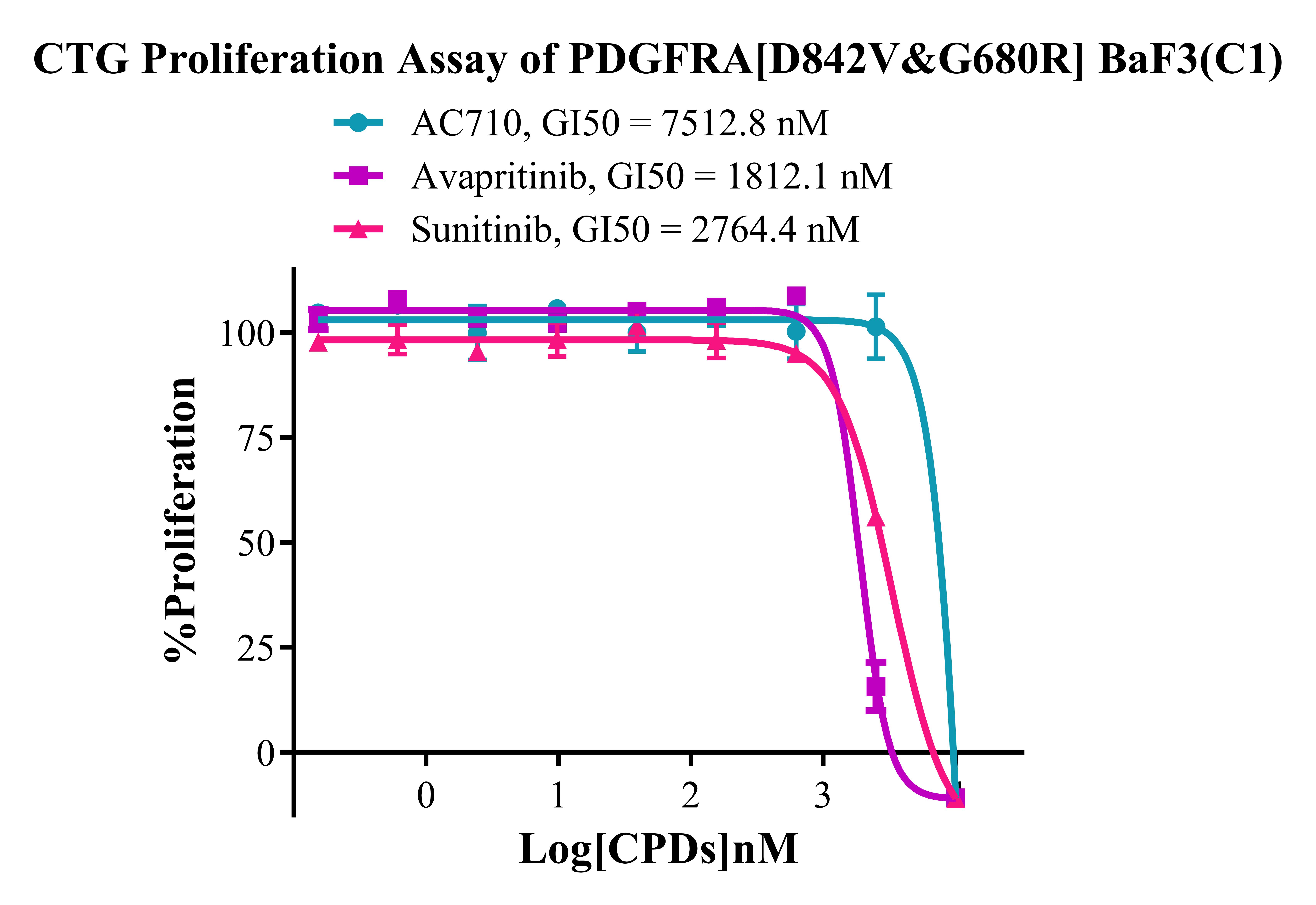 Figure 5. CTG Proliferation Assay of PDGFRA [D842V&G680R] BaF3(C1). |