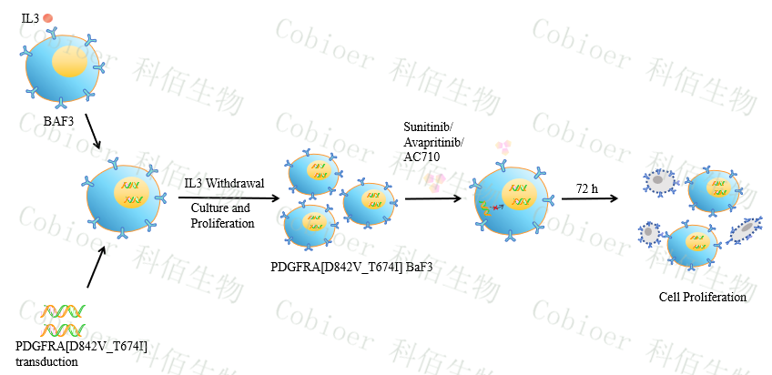 Figure 1. PDGFRA[D842V_T674I] BaF3 細胞的構(gòu)建原理圖 |