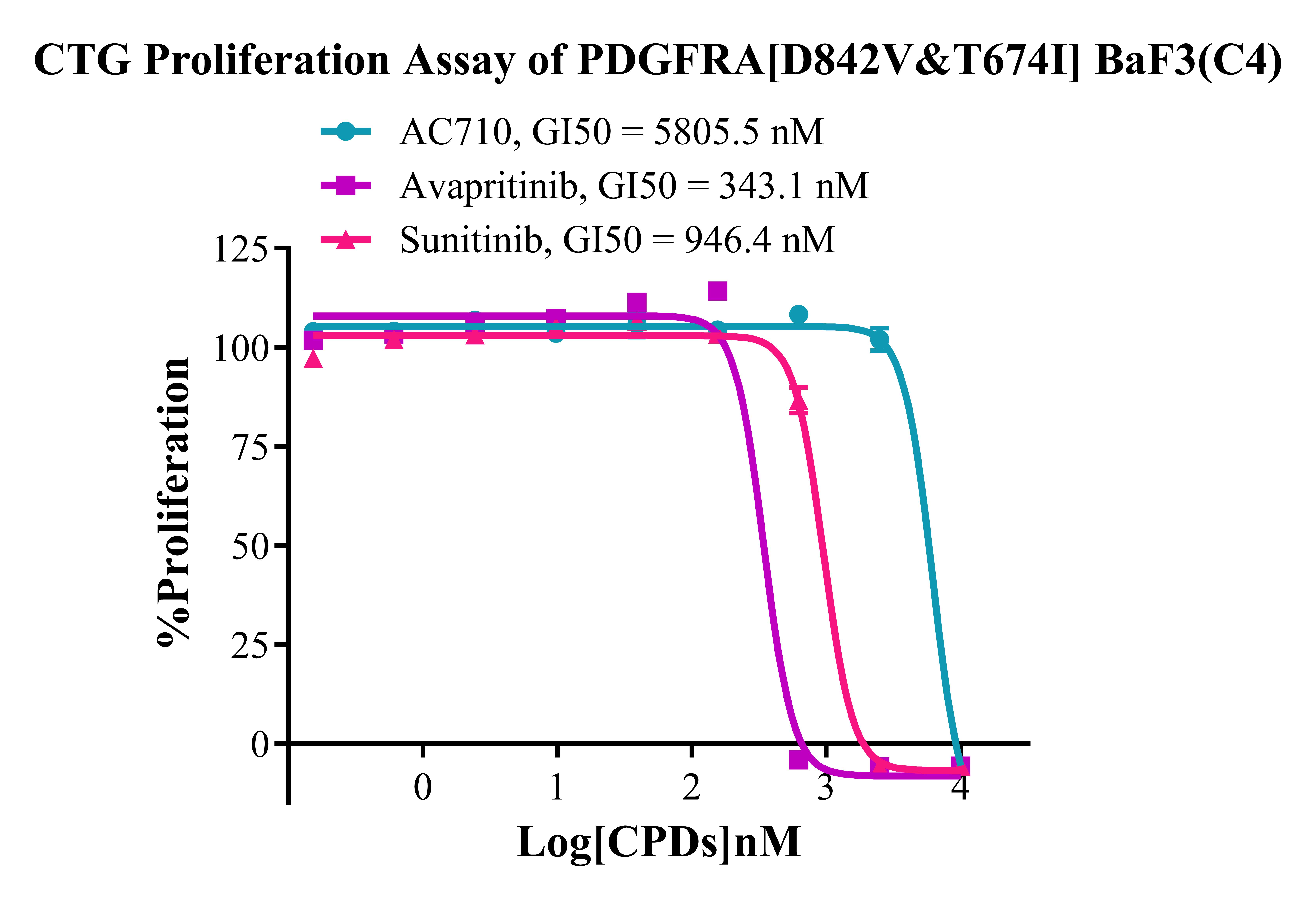 Figure 5. CTG Proliferation Assay of PDGFRA [D842V&T674I ] BaF3(C4). |