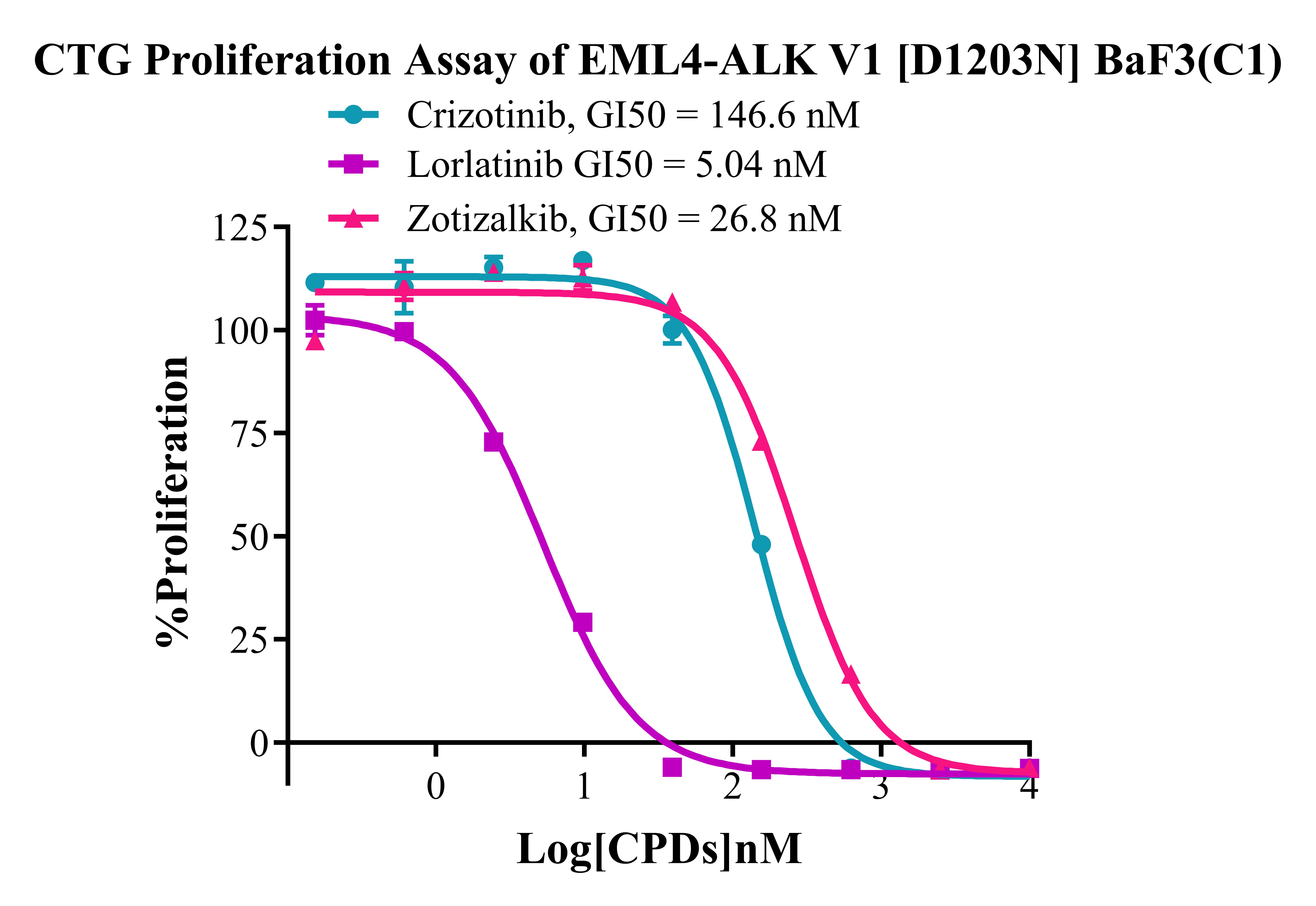 Figure 4. CTG Proliferation Assay of EML4-ALK V1 [D1203N] BaF3(C1).