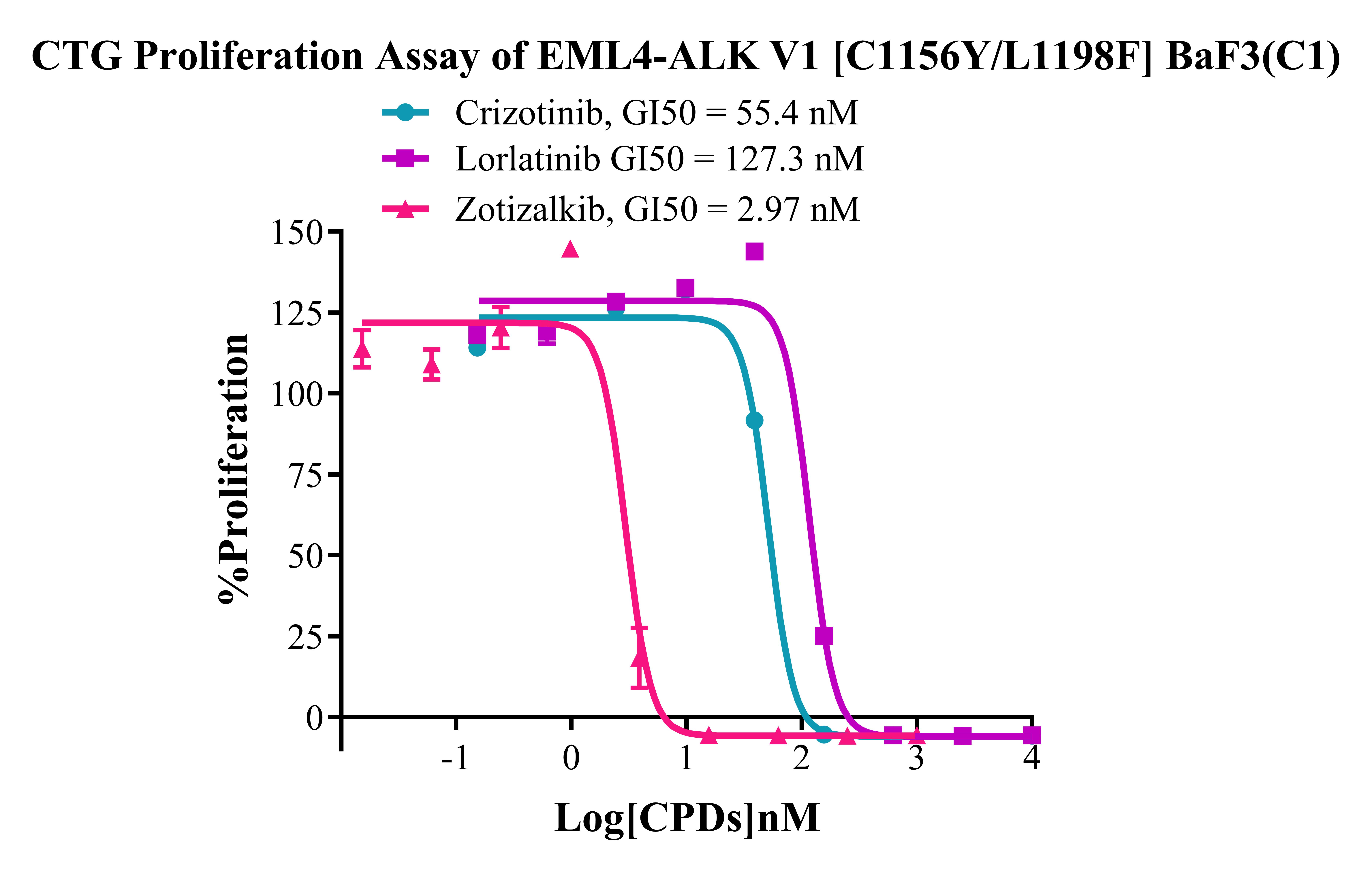 Figure 5. CTG Proliferation Assay of EML4-ALK V1 [C1156Y/L1198F] BaF3(C1).