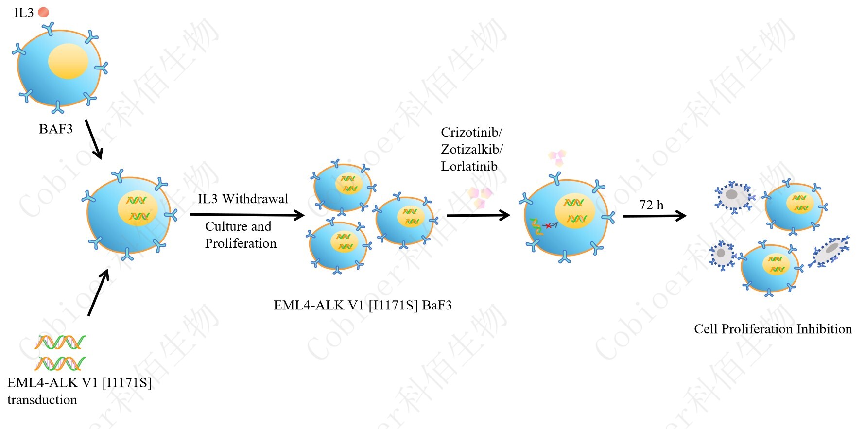 Figure 1. EML4-ALK V1 [I1171S]/BaF3 細(xì)胞的構(gòu)建原理圖