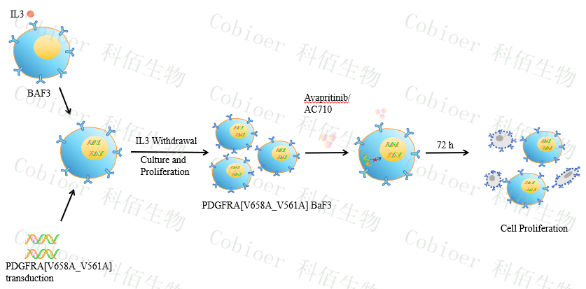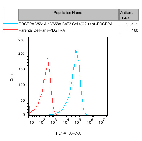 PDGFRA[V658A_V561A] BaF3 藥靶細胞,通過轉導突變狀態(tài) PDGFRA[V658A_V561A] 基因到 BaF3 細胞系中,穩(wěn)定表達人 突變形態(tài)下的PDGFRA[V658A_V561A] 基因。