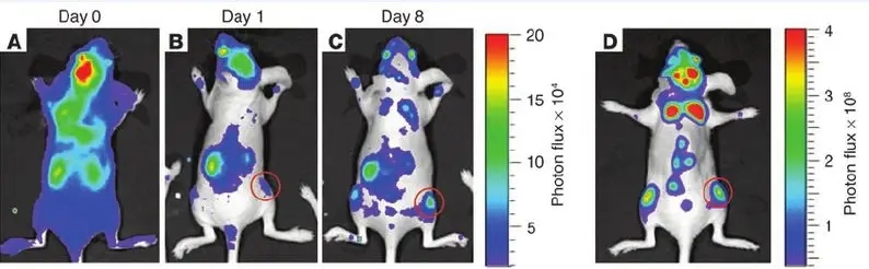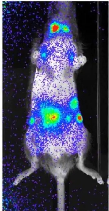 2.腫瘤轉(zhuǎn)移:由于活體成像技術(shù)直觀、靈敏度高的特點,成為研究腫瘤轉(zhuǎn)移的重要手段。動物體內(nèi)腫瘤轉(zhuǎn)移示例: