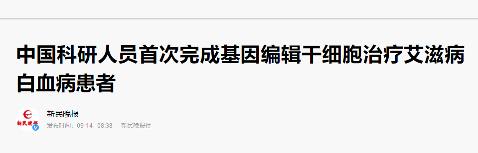 中國(guó)科學(xué)家完成首例基因編輯干細(xì)胞治療艾滋病和白血病患者
