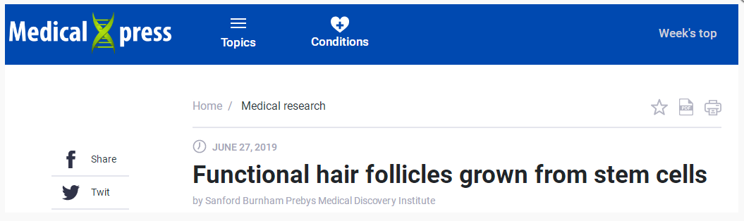 Sanford Burnham Prebys的科學(xué)家利用人體誘導(dǎo)的多能干細(xì)胞(iPSCs)創(chuàng)造了一種通過皮膚生長的自然頭發(fā),這是一項(xiàng)可以徹底改…