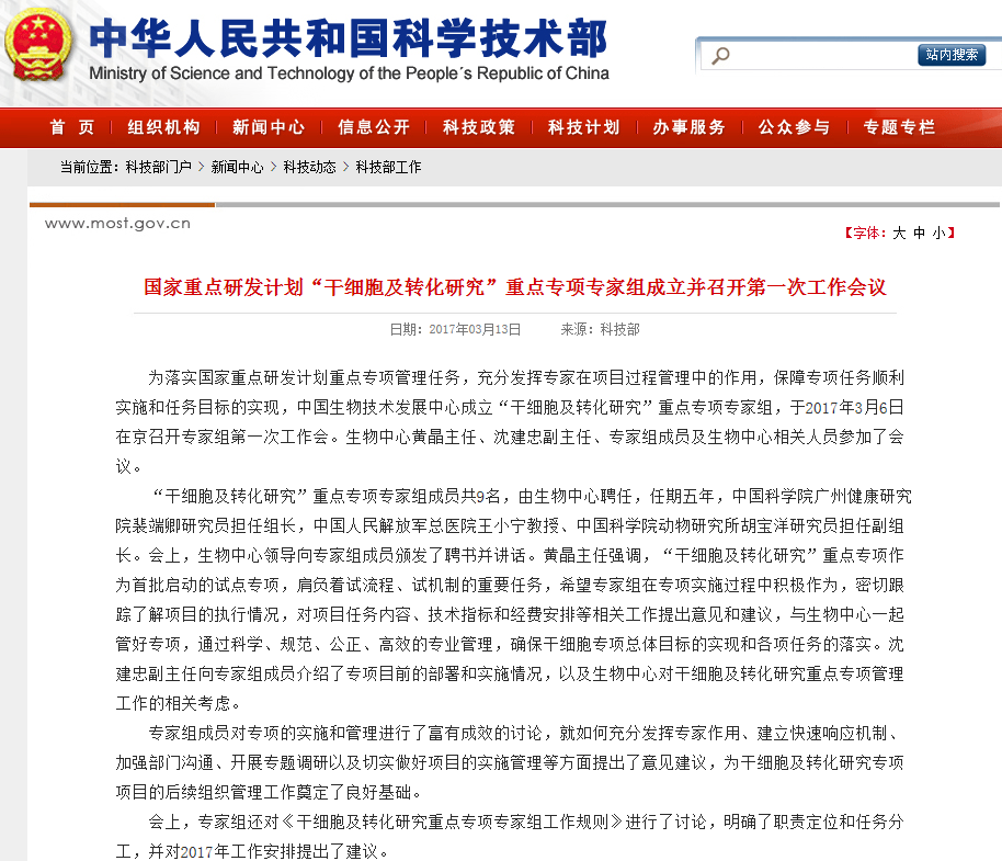 為落實國家重點研發(fā)計劃重點專項管理任務(wù),充分發(fā)揮專家在項目過程管理中的作用,保障專項任務(wù)順利實施和任務(wù)目標(biāo)的實現(xiàn),中國生物技術(shù)發(fā)展中心(以下簡稱“生物中心”)成立“干細(xì)胞及轉(zhuǎn)化研究”重點專項專家組,于2017年3月6日在京召開專家組第一次工作會。…