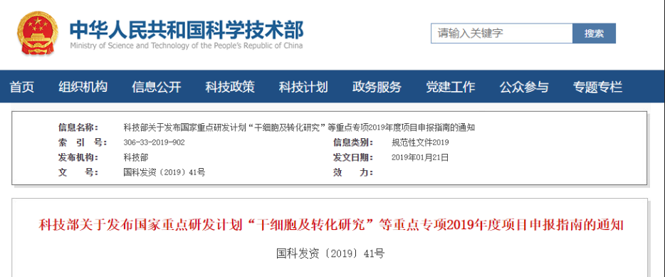 2019年1月21日,我國科技部官網(wǎng)正式發(fā)布了“干細胞及轉(zhuǎn)化研究”重點專項2019年度項目申報指南,指南中明確:在之前已支持98個項目的基礎上,2019年國家再撥款4億元,支持12個干細胞研究方向。其中干細胞資源庫、干細胞治療性腺衰老也寫入申報指南。指南中明確…