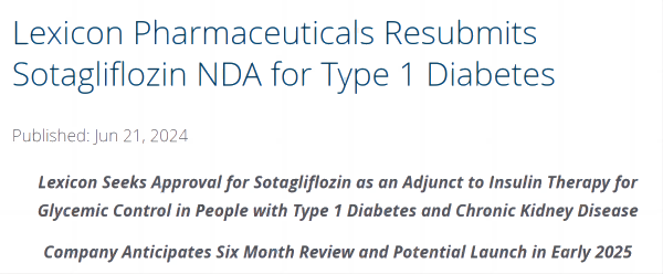 6月21日,Lexicon宣布,在與FDA進行多次互動并得到最近的反饋后,該公司已重新提交了索格列凈(sotagliflozin)的新適應癥申請,作為胰島素治療的輔助藥物,用于1型糖尿病和慢性腎臟?。–KD)患者的血糖控制。