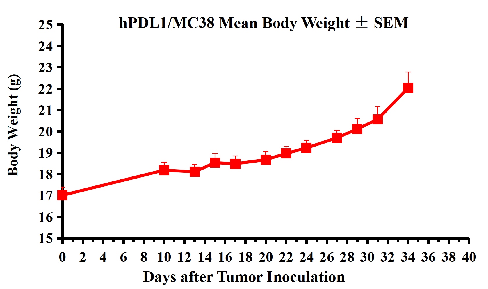 Figure 1. hPDL1/MC38 Mean Body Weight ± SEM.