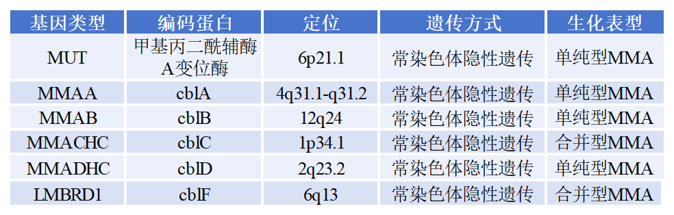 甲基丙二酸血癥(methylmalonicacidemia,MMA)又稱甲基丙二酸尿癥(Methylmalonicaciduria),是我國罕見病中最常見的常染色體隱性遺傳的有機酸代謝病。MMA由甲基丙二酰輔酶A變位酶(methylmalonylCoAmutase,MCM)或其輔酶鈷胺素(cobalamin,Cbl;也即維生素B12,VitB12)代謝缺陷所導致。根據(jù)患者血液總同型半胱氨酸是否增高,分為單純型MMA及MMA合并同型半胱氨酸血癥(簡稱合并型MMA)2種生化表型。合并型MMA占我國MMA患者的70%左右。目前已知與合并型MMA相關(guān)的基因有1個(MMACHC),與單純型MMA相關(guān)的基因有5個(MUT,MMAA,MMAB,MCEE,MMADHC)。還有一些基因可致不典型MMA或少見疾病并發(fā)MMA,包括HCFC1,ACSF3,ALDH6A1,TCblR, CD320,LMBRD1,ABCD4,SUCLG1,SUCLG2等。