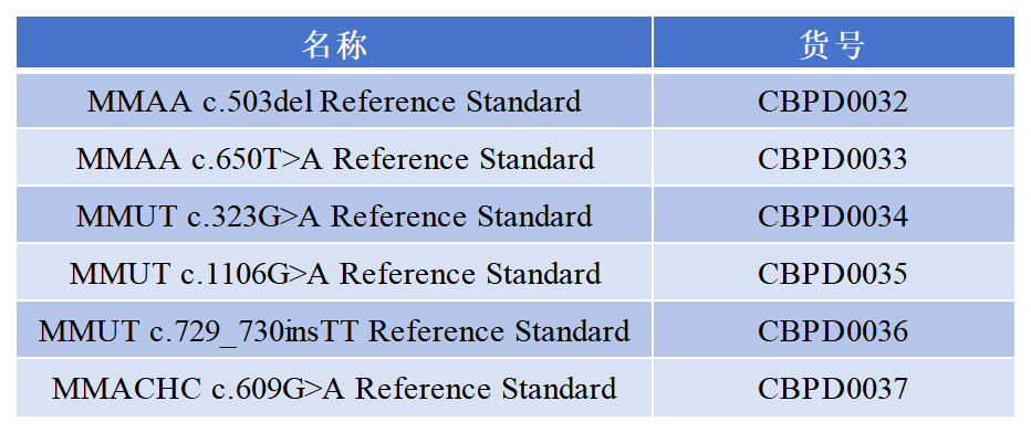 在MMA檢測實驗中,如何判斷結(jié)果的準確性,標準品是必不可少的,科佰現(xiàn)推出MMA相關(guān)標準品,主要包含了MMAA、MMUT、MMACHC基因位點,后期還將陸續(xù)推出其他基因位點。