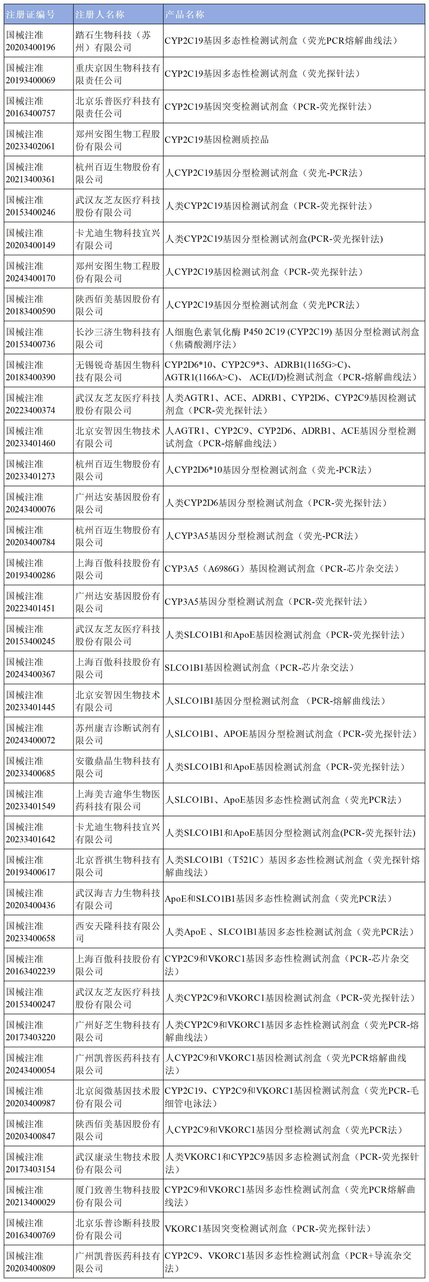截至2023年9月,國內(nèi)批準(zhǔn)個(gè)性化用藥相關(guān)基因檢測產(chǎn)品包括CYP2C19、CYP2C9、UGT1A1、CYP2D6、ALDH2、CYP3A5、SLCO1B1、VKORC1、APOE、ACE、TOP2A、PML-RARα等標(biāo)志物。檢測常用的方法有實(shí)時(shí)熒光聚合酶鏈反應(yīng)(polymerase chain reaction,PCR)、PCR?電泳分析、PCR-基因芯片法、PCR-Sanger測序、熔解曲線法等分子生物學(xué)方法。