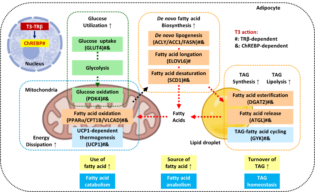 (來源:Adipocyte thyroid hormone β receptor-mediated hormone action fine-tunes the intracellular glucose and lipid metabolism and systemic homeostasis)