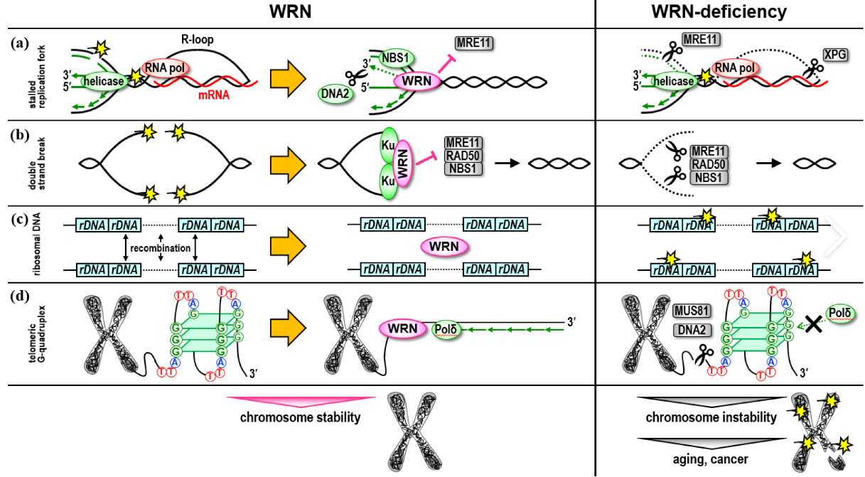 WRN(Werner Helicase)是一種具有解旋酶和核酸外切酶活性的多功能酶,在維持基因組穩(wěn)定性至關重要的各種細胞過程中發(fā)揮作用,包括 DNA 復制、轉錄、DNA 修復和端粒維護。