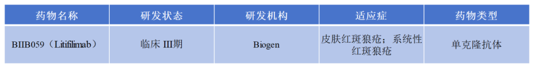 目前,全球關(guān)于BDCA-2這個(gè)靶點(diǎn)的在研管線并沒有很多,進(jìn)展最快的是渤健生物開發(fā)的BDCA-2單抗BIIB059(Litifilimab),通過抑制BDCA-2,減少IFN-I等炎性細(xì)胞因子的產(chǎn)生,從而達(dá)到治療紅斑狼瘡的目的。